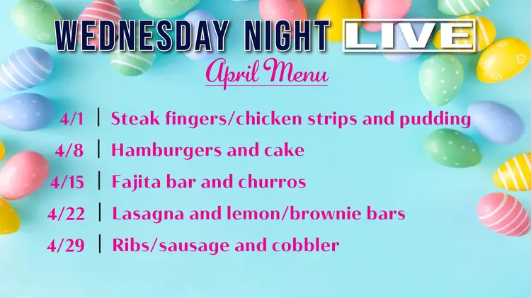 Wednesday Night Live at First MethodistJoin us midweek for a time of worship, fellowship, and growth designed for the whole family!We begin at 5:15 PM with a candle-lit Vespers service in the Chapel, a quiet moment to pause and center ourselves. At 5:30 PM, everyone is invited to gather in the Atriu